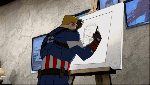 look at his paintings on the wall omg he’s got two of Tony up there aaaahh and Thor and Hulk gazing into each other’s eyes