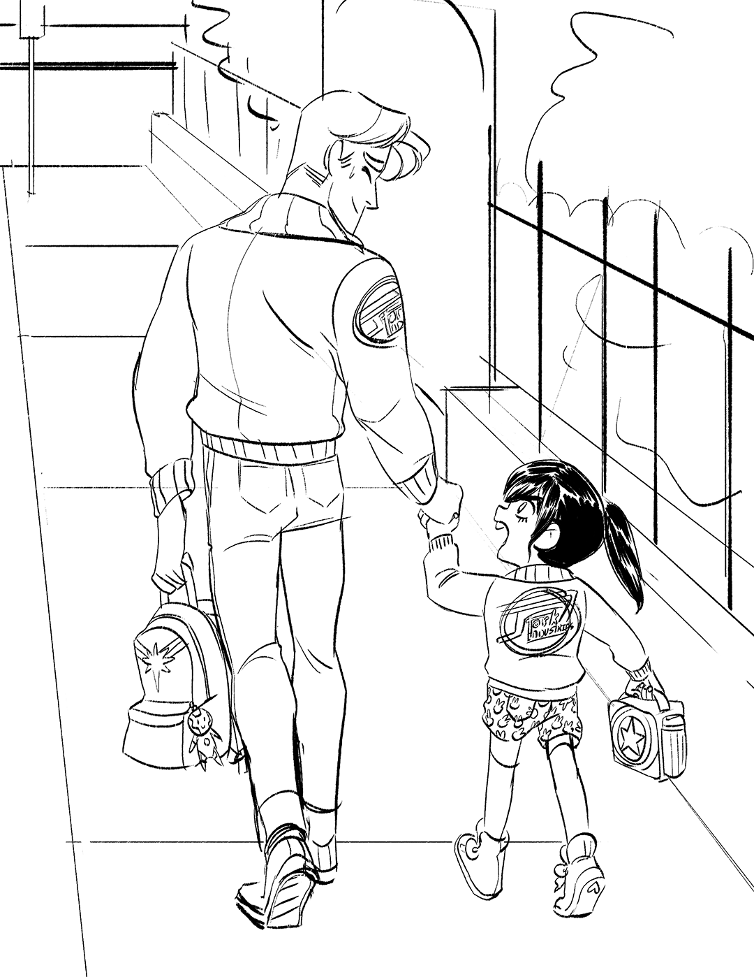 a quick Warm up inspired by @hellogarbagetime who saw a dad carrying their kids bag on the street.