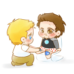 Tony: I DON’T NEED KNEE PADS ON THE AMOUR WHAT ARE YOU THINKING STEVEN ROGERS!!ヽ(#`Д´)ノ