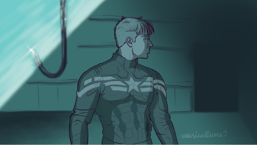 [Image: Steve Rogers in the stealth uniform looking around a dark room–to one side of the image is a meat hook gleaming in a beam of light.]