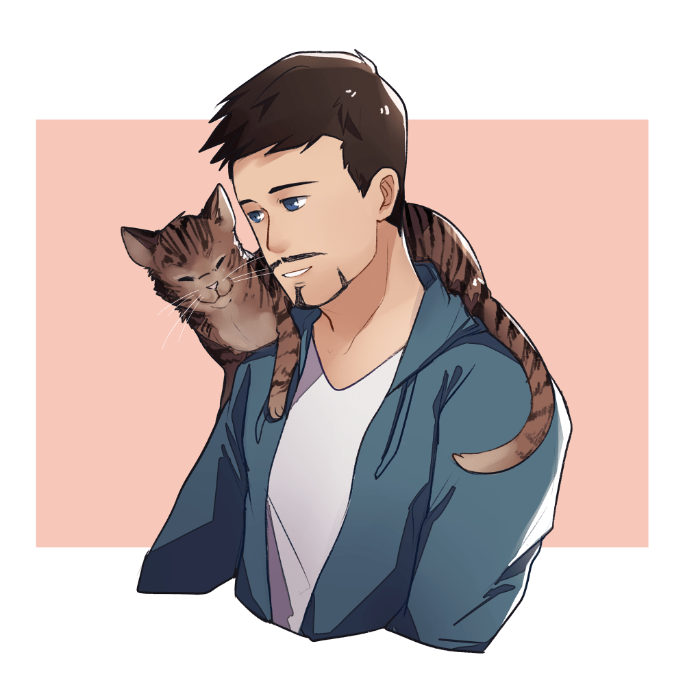 Here’s a small scene I drew where Tony is bonding with a cat who stumbled into his life.