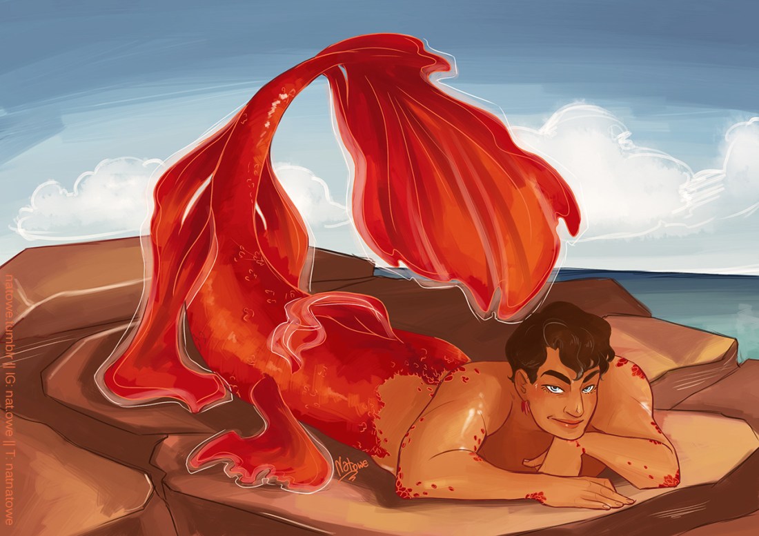 Amazing @sarahhbe gave me such a wonderful opportunity to draw merman!Tony with her commission. I had so much fun drawing his tail, in my hc Tony has to be a Betta fish with lucious fins.