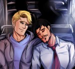 A while ago I commissioned the awesome @colonelrogers for this beautiful fanart of my non-powered AU, where Steve and Tony meet when Tony falls asleep on the shoulder of the handsome stranger sitting next to him on the bus (kudos to @stefanidoesstuff for helping me brainstorm <3)