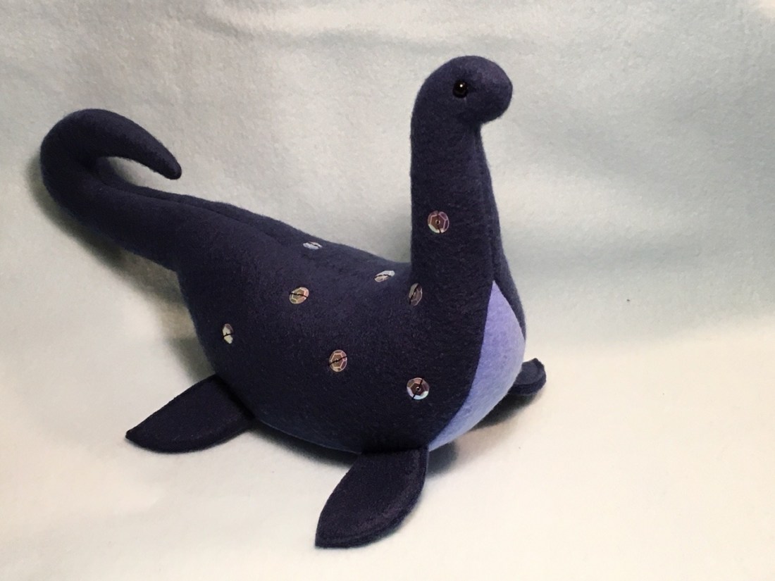 A navy Nessie! Check out The Stitchy Button on etsy, for your own custom-made bunnies and dolls, dragons, unicorns, and much more!