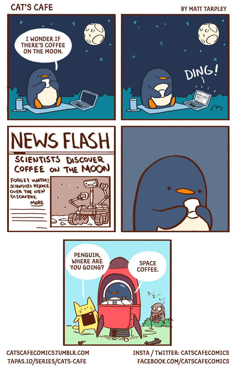 capneverever Uncategorized October 1, 2018December 15, 2018 1 Minute simcha-joy: catscafecomics: SPACE COFFEE! @thebarefootemma Source: catscafecomics Share this: Share on X (Opens in new window) X Share on Facebook (Opens in new window) Facebook Like Loading... Related Published by capneverever View all posts by capneverever Published October 1, 2018December 15, 2018