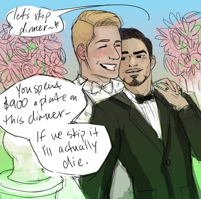Having just barely survived my own wedding I’ve decided Steve would be the type to start to crack under wedding stress/cost and Tony would have no ability to empathize with this particular meltdown.