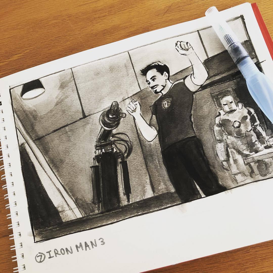 Day 7- Iron Man 3!! One of my fave scenes in the entire MCU is just Tony dancing to Christmas music in his workshop 😂💕 #inktober2018 #tonystark #ironman #fanart #marvel