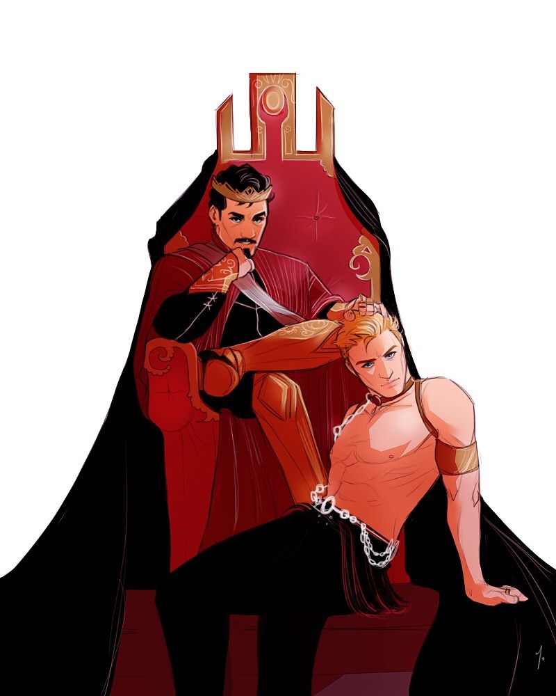 So @starspangledspandex and I went in together to commission THIS GORGEOUS PIECE OF PERFECTION from @mirthandstar. Look at them! Bask in the glory of Concubine Steve and King Tony!