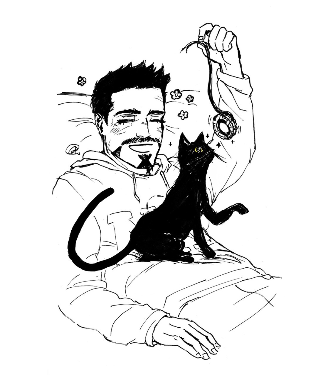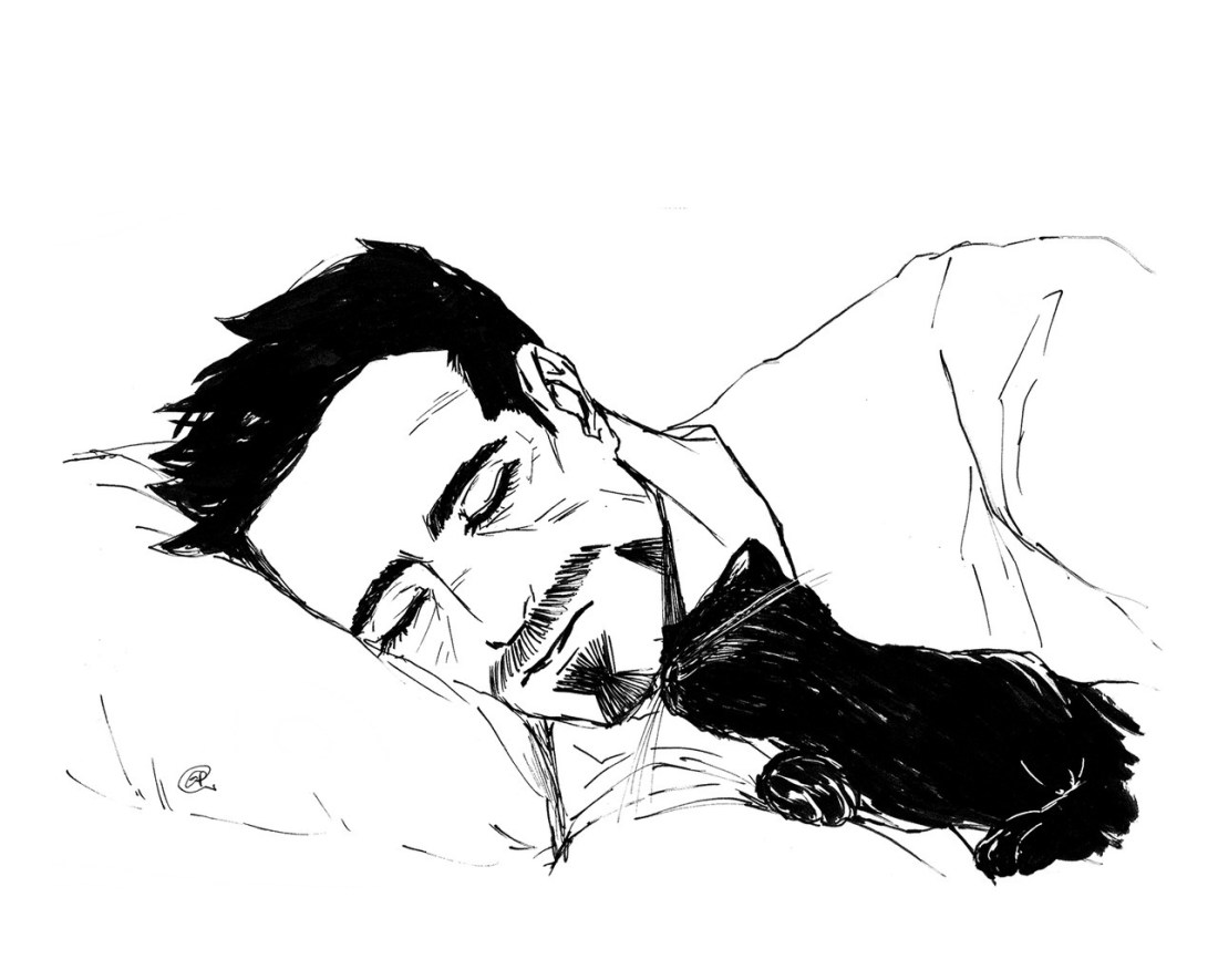 inktober 8- bedtime (Tony lets Goldie sleep wherever he wants)