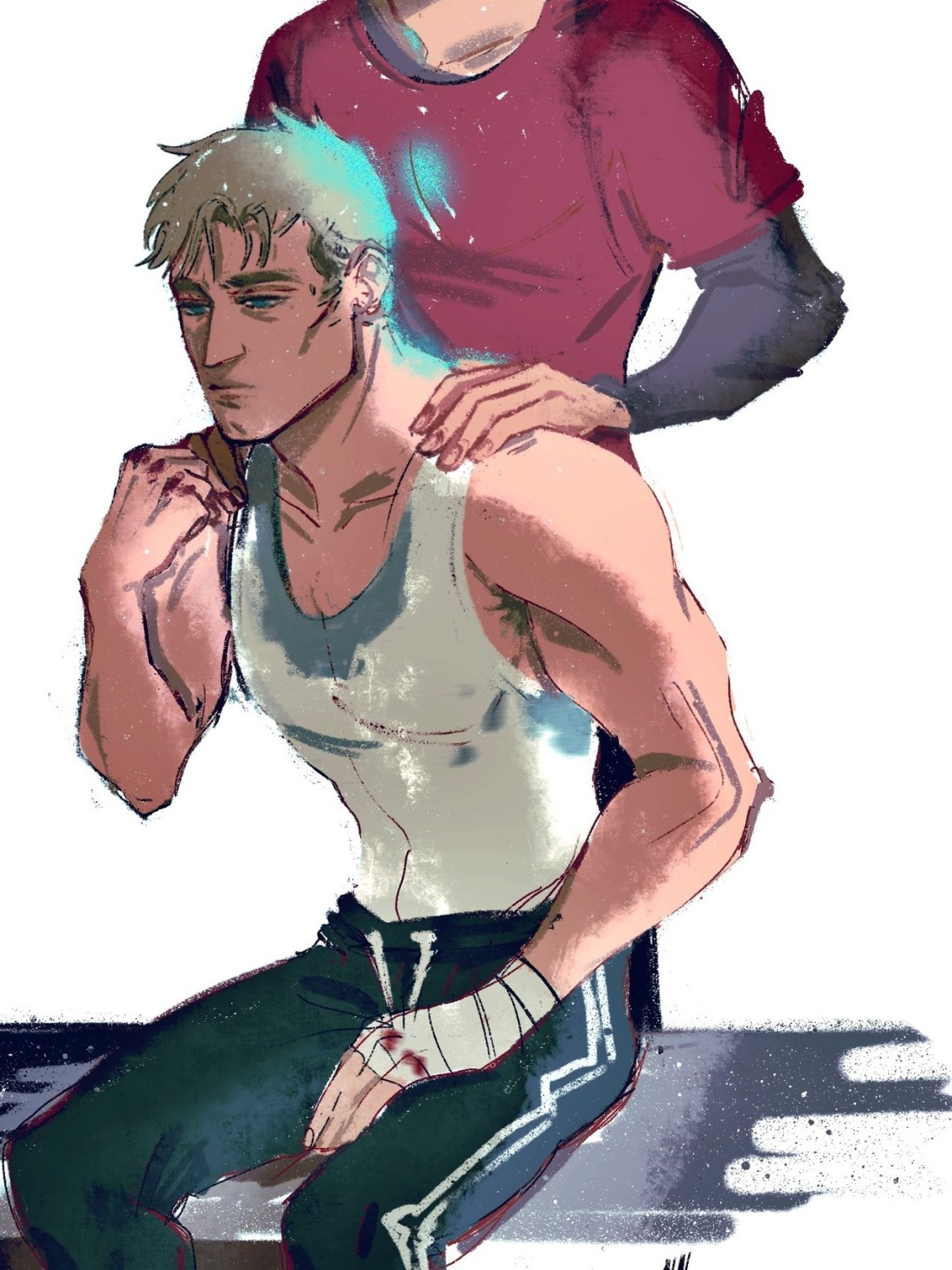 He feel asleep on Steve’s solid shoulder. He shook himself awake when the crick in his back was too painful. “What time? 1 am?” The odds of getting a little nookie in after the game were vanishingly small.